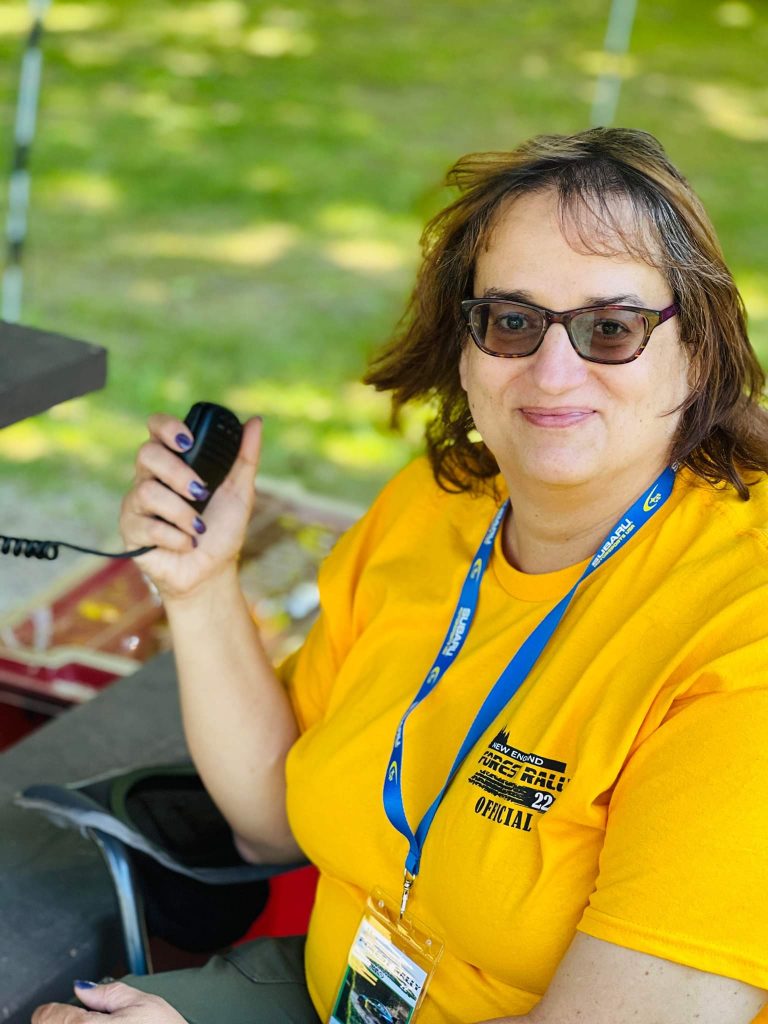The picture to the right of me is my favorite picture of myself. It was taken by my friend Bonnie at the New England Forest Rally in August of 22. It shows me operating one of my ham radios, a hobby I like. Beyond that is myself and Smilow the Wonder Dog in my beloved 2017 RAV4